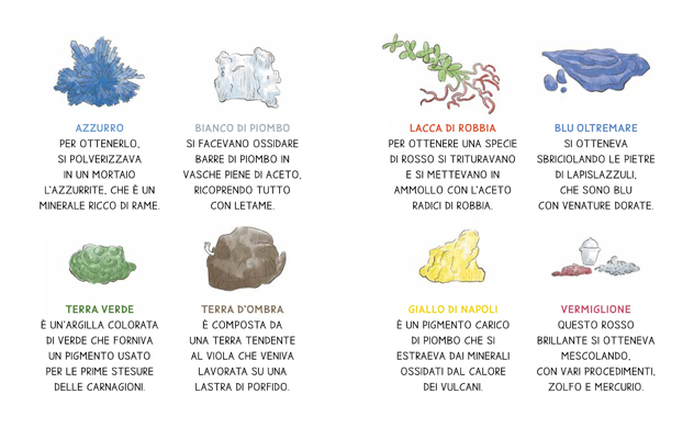 NELLA DIDATTICA: Oltre ad essere un libretto illustrato con una storia molto simpatica, è un omaggio a tutte le persone senza le quali sarebbe stato impossibile realizzare le grandi opere d’arte. Alla fine del libretto viene fatto riferimento esplicito all’opera di Vermeer “Ragazza che legge una lettera” in cui sono stati usati i colori di cui si racconta nella storia; a seguire si trova una legenda dei colori citati nel libro con riferimento per ognuno al materiale da cui si ricavava il pigmento.