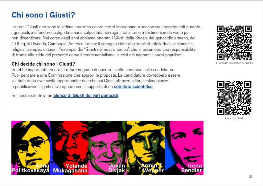 - un plico in Pdf con le istruzioni per celebrare la Giornata e tutte le informazioni su Gariwo e sui Giusti (di cui vi riportiamo qualche immagine sotto);