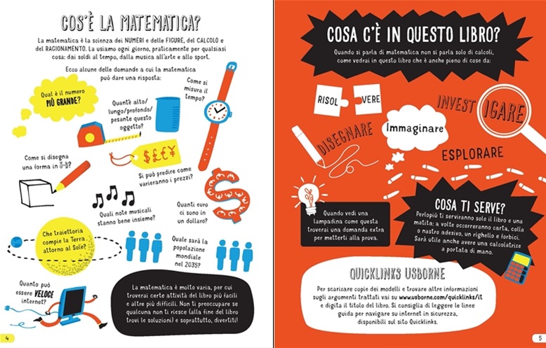 DI COSA SI TRATTA: Il mio taccuino di matematica edito da Usborne è un activity book per affrontare la matematica in maniera ludica, uno strumento che offre l’opportunità di sperimentare le applicazioni della matematica e comprendere i ragionamenti dei matematici divertendosi.