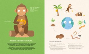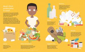Ciò che ci piace tantissimo di questo libro è che, oltre ad essere coloratissimo e molto accattivante per i più piccoli, spiega in modo molto chiaro perché i rifiuti siano dannosi per il pianeta illustrandone i “viaggi”: alla discarica, verso il riciclo, nell’ambiente, per il riuso.