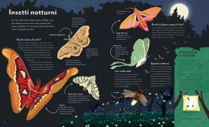 Un libro illustrato che parla di cielo di giorno e di notte: da una parte si esplorano le caratteristiche del cielo diurno e del cielo notturno. É diviso in capitoli tematici e ha grandi tavole che illustrano i vari argomenti: dagli animali, alle nubi fino alle costellazioni. Molto utile per la consultazione libera in classe e-o per le ricerche autonome dei bambini.
