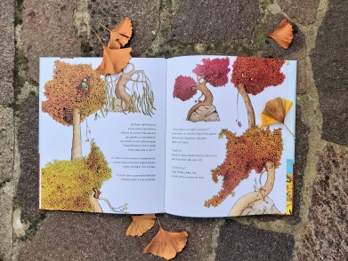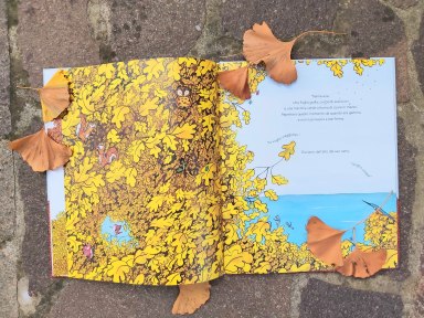 La piccola foglia gialla coi bordi arancioni e una macchiolina verde voleva viaggiare, farsi abbagliare dal sole e poi scendere a sentire il solletico dei fili d’erba, voleva abbandonarsi alla corrente per farsi trasportare in posti mai visti, e si lasciò cadere.