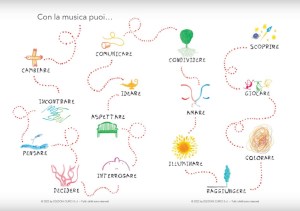Ogni pagina è un invito all’ascolto, alla riflessione, all’introspezione e alla creatività attraverso l’ascolto di un brano, l’osservazione di un’illustrazione e la lettura di una domanda-stimolo.