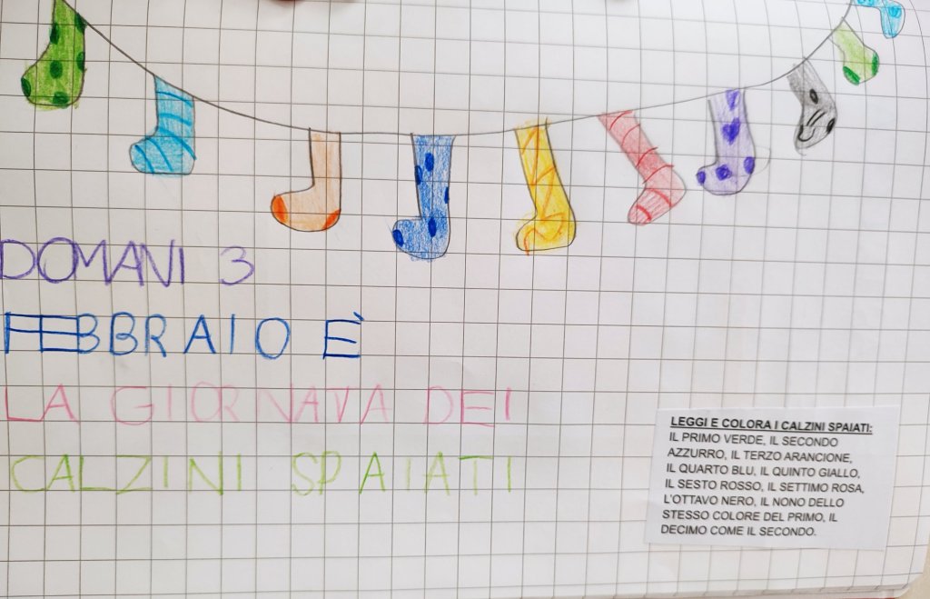 Nei prossimi giorni i bambini indosseranno calzini spaiati e leggeremo insieme albi e storie dedicati al tema inclusione.