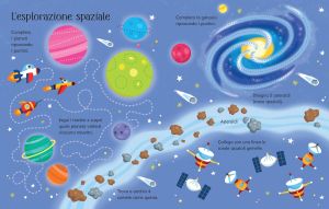 La seconda proposta (“LO SAPEVI? LO SPAZIO” ed. Usborne) è più rivolta ai bambini dai sei anni in poi e desidera soddisfare (almeno in parte) le innumerevoli curiosità che hanno i bambini sul tema spazio e corpi celesti. “Quante stelle ci sono nell’Universo? Chi sono stati i primi astronauti? Perché, al tramonto, il cielo di Marte si tinge di blu?” Le risposte a queste e a tante altre domande sullo Spazio sono tutte racchiuse in questo sorprendente libro illustrato.