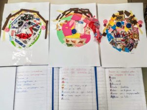 - un laboratorio di riciclo creativo: noi abbiamo proposto ai bambini di utilizzare i resti delle loro merende per realizzare ritratti, che poi sono stati arricchiti da acrostici e descrizioni ,rendendo l’attività interdisciplinare con la lingua italiana.