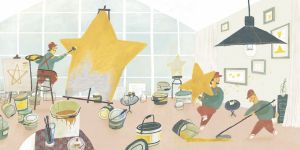 Si tratta di un silent book che racconta in modo fantasioso e divertente come nascono le stelle. Il fatto che si tratti di un libro senza parole, quindi adattissimo ad essere utilizzato dalla prima alla quinta.