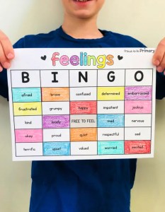 Incoraggia i bambini a riconoscere le proprie emozioni durante una divertente partita di Bingo. Dopo aver provato un’emozione, possono colorare una sezione su una scacchiera di Bingo.