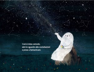LA STORIA:Fantasmino non ama infestare le case: preferisce comporre piccoli mazzi di fiori e trascorrere ore a osservare le stelle. Purtroppo, però, non ha nessuno con cui condividere quei momenti e si sente spesso solo.In una nebbiosa notte d’autunno, si imbatte in una grande roccia, perfetta per sedersi, guardare il cielo e sognare a occhi aperti.