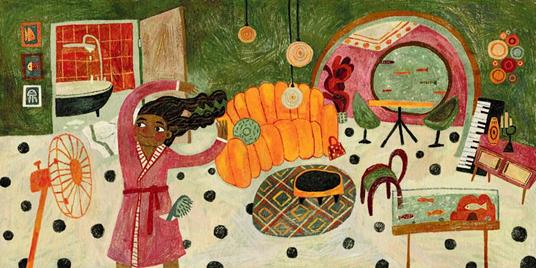 L’autrice, dedicando in apertura l’albo a tutti coloro che sono stati oscurati da stereotipi e fraintendimenti, realizza pienamente il suo intento comunicativo illustrando per ogni sequenza prima cosa la bambina pensa di vedere alla finestra e successivamente cosa c’è davvero nella stanza osservata.