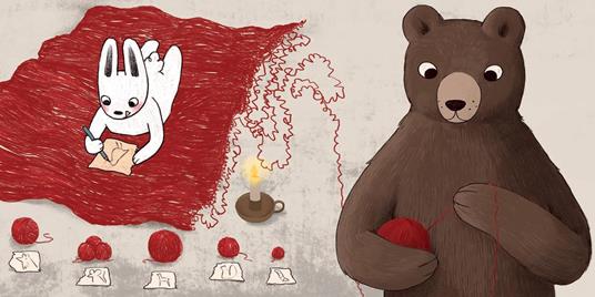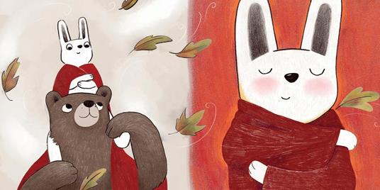 LA STORIA: Quando l’inverno si fa freddo e pungente, Orso raggiunge Coniglio e condivide con lui il calore della sua mantella di lana. Ma perché non portare un po’ di calore anche agli altri animali del bosco? Ecco che così Orso e Coniglio creano per gli altri animali sciarpe, cappellini e guanti di lana rossa.