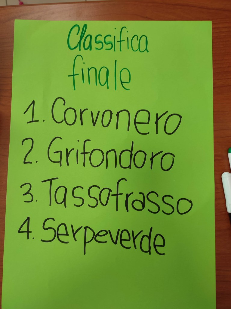 Alla fine, proclamiamo la Casa vincitrice del Torneo di Matematica Magica con un piccolo premio simbolico, semplice ma tematizzato: