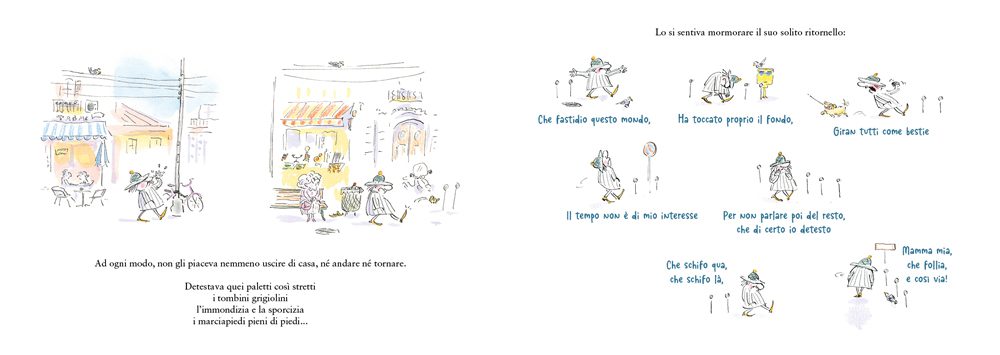 LA STORIA: Un ometto scontroso brontola così tanto per ogni cosa, da far scomparire tutto ciò che lo circonda.Rimasto solo in mezzo al vuoto, l’ometto si pente e vorrebbe tornare indietro….