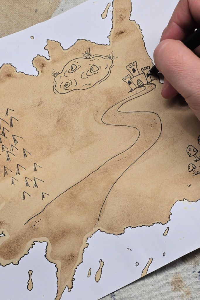 - MAPPA DELLE EMOZIONI: per i più grandi si può usare la tecnica del caffè (o del the), utilizzando un semplice strofinaccio imbevuto delle bevande, lo si passa sul foglio ruvido fino ad ottenere macchie irregolari, che saranno vita a paesaggi sempre nuovi, perfetti per essere ribattezzati e denominati secondo la geografia del cuore di ciascuno. Per provare vari effetti si può far riferimento a questo semplice tutorial: https://wmdesignhouse.com/how-to-make-coffee-paper-the-easy-way-diy-tutorial/