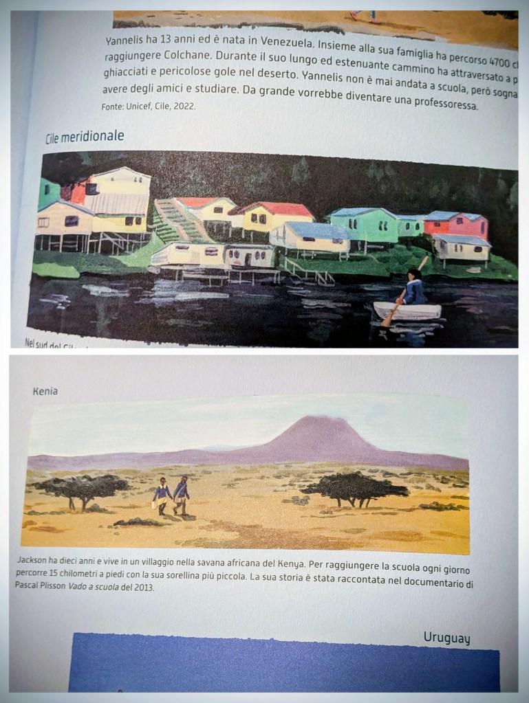 - Ulteriore sviluppo: a conclusione della storia ci sono delle splendide pagine che descrivono altri luoghi, diversi e distanti nel mondo, in cui i bambini devono faticare e compiere lunghi tragitti per giungere a scuola.