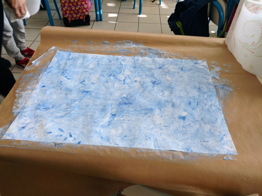 Pulizia: con una spatola o un righello si rimuove la schiuma in eccesso, facendo emergere il disegno.