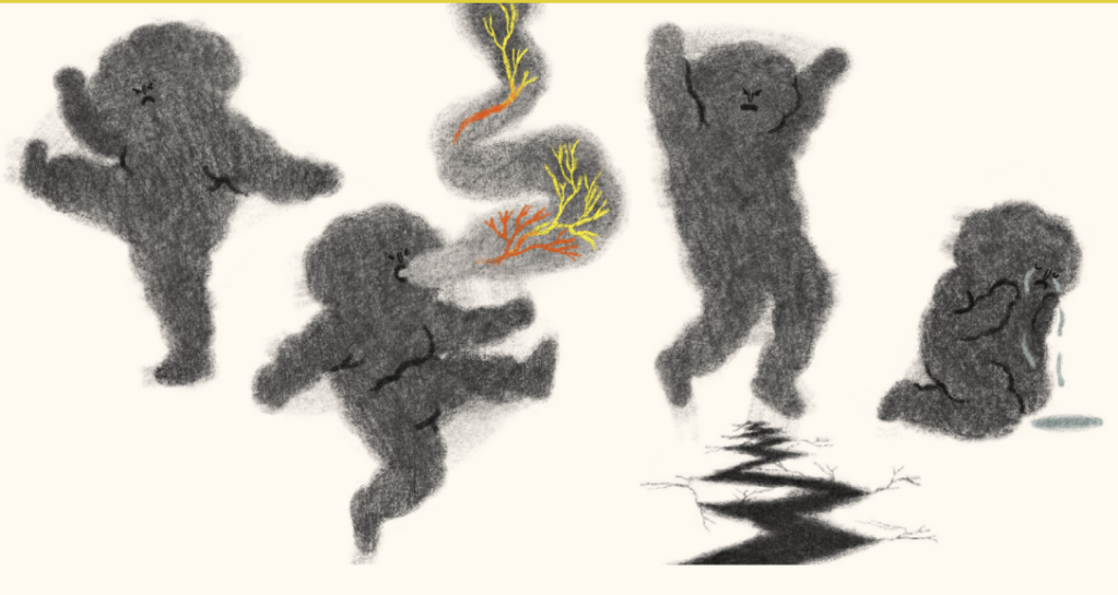 ATTIVITÁ correlate: come sempre possiamo proporre delle attività di creatività manuale che diano vita alla tempesta interiore, dando un aspetto tangibile al tumulto che ognuno può provare dentro. Nella bacheca trovate diversi spunti, di complessità variabile, adattabili alle diverse età e competenze.